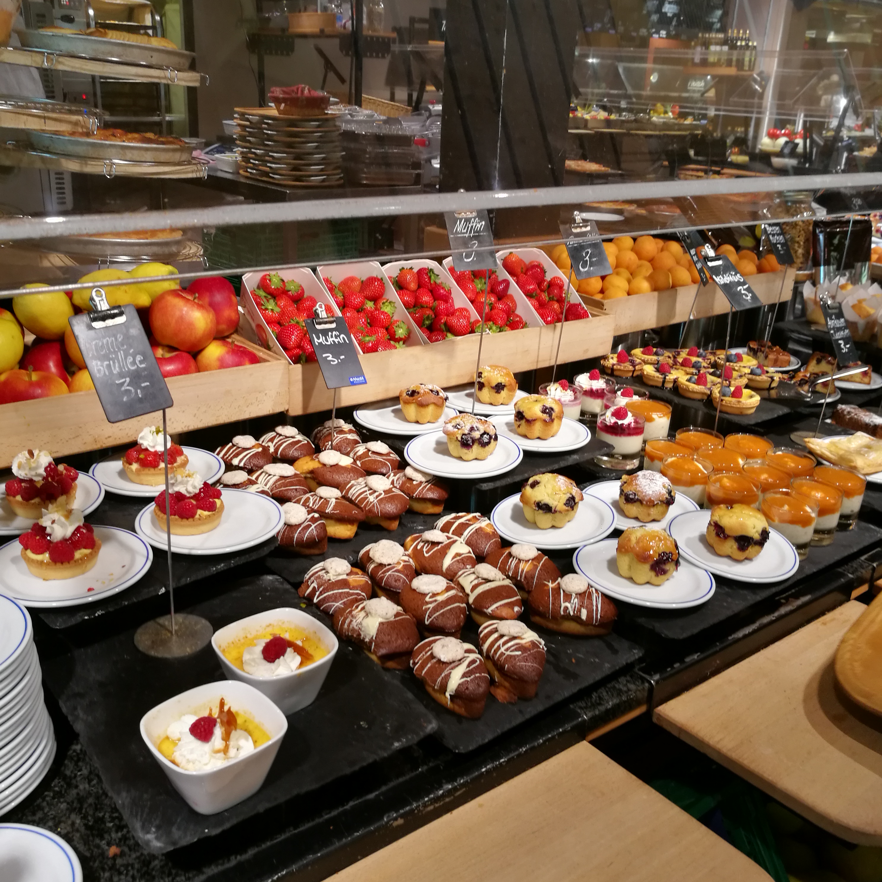 MANOR Bahnhofstrasse 75,8001 Zurich Open 9:00am-8:00pm (Sunday Closed) https://www.manor.ch Bahnhof通りにあるショッピングビルManor内のレストラン。 ここはちょっとオシャレなビュッフェスタイルレストラン。 木製のトレーをとって好きなものをピックアップしてレジに行くだけ。 盛り付けの素敵なお料理達はどれも美味しそうで、いつも迷って店内を2、3周はぐるぐるしてしまいます。。笑 前菜、サラダ、キッシュやパン、メインディッシュのグリルコーナー、パスタ、付け合わせ、ドリンク類など種類も豊富でどれも美味しいです。 デザートも充実しているのでカフェとして利用するのもおすすめです。 長居できるのでお友達とたっぷりおしゃべりしたい時にも良いですよ!