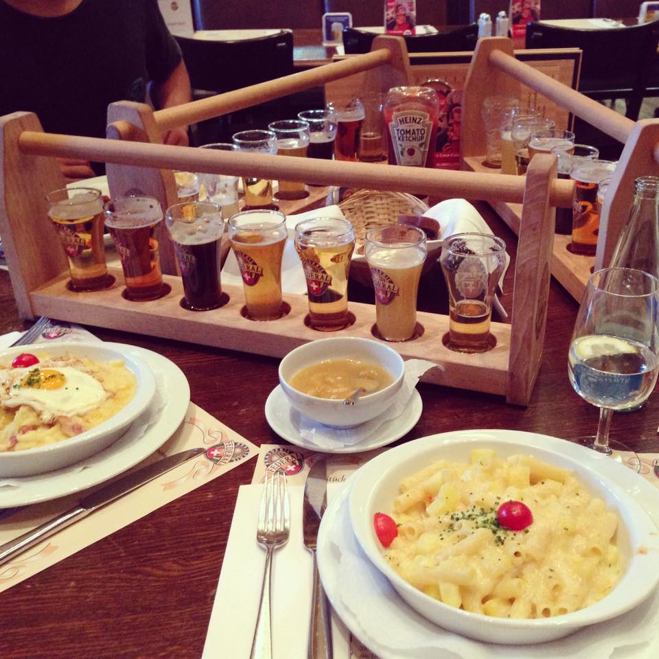 チューリッヒ中央駅地上階にあるレストラン。 ここは代表的なスイス料理が食べられる立地の良いレストランですが、何と言ってもこの7種ビールの飲み比べはそそられませんか?笑 ここに来れば殆どのスイスで味わうべきものが味わえると思います。 チューリッヒ滞在日数が少ない方にはおすすめです!